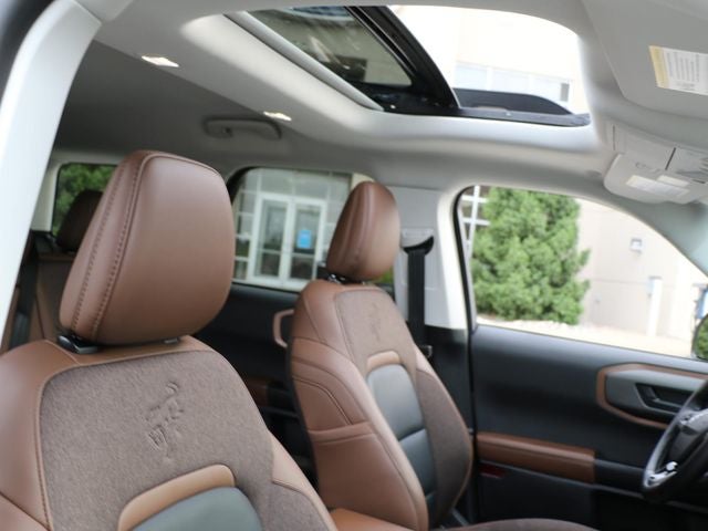 Inside, the Bronco Sport Outer Banks pampers you with premium amenities, including heated front seats, a heated steering wheel, dual-zone automatic climate control, and a panoramic power moonroof. The advanced SYNC 4 infotainment system with Connected Navigation and a 10-speaker Bang & Olufsen sound system keeps you connected and entertained.